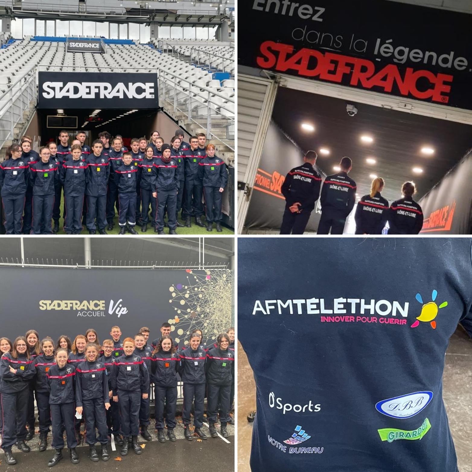 Le 3 et 4 décembre derniers, 50 JSP de Saône et Loire ont été sélectionnés pour se rendre à Paris sur le plateau de France télévision, au stade de France et à l’arc de triomphe afin de participer à des évenements en faveur du Téléthon!